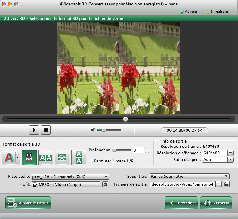 - Logiciel Fantastique. Avec ce 3D Convertisseur pour Mac, je peux facilement obtenir les films 3D vifs à partir des films 2D et convertir entre différents formats 3D. Par ailleurs, merci pour votre bon service.
