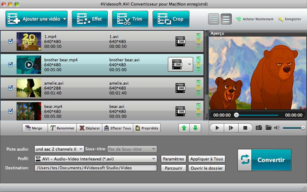 Ce Mac AVI Convertisseur supporte la conversion d'entre des fichiers audio et l'extraction de l'audio de la vidéo. En outre, ses fonctions d'édition puissantes vous aideront à optimiser l'effet vidéo.