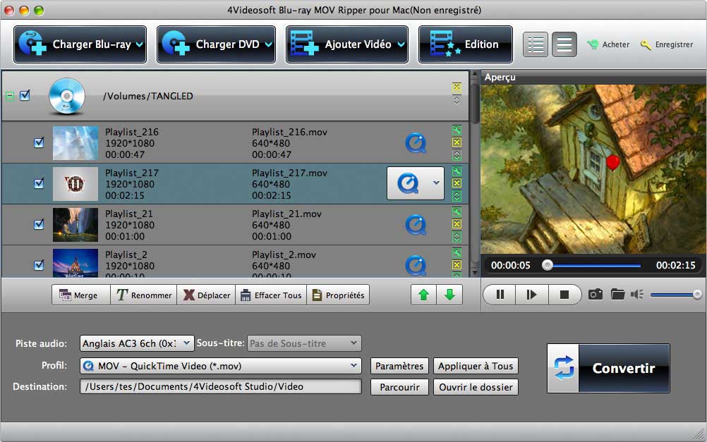 - Ce Mac Blu-ray MOV Ripper vous permet de convertir DVD et le fichier vidéo, et d'extraire l'audio à partir de Blu-ray.