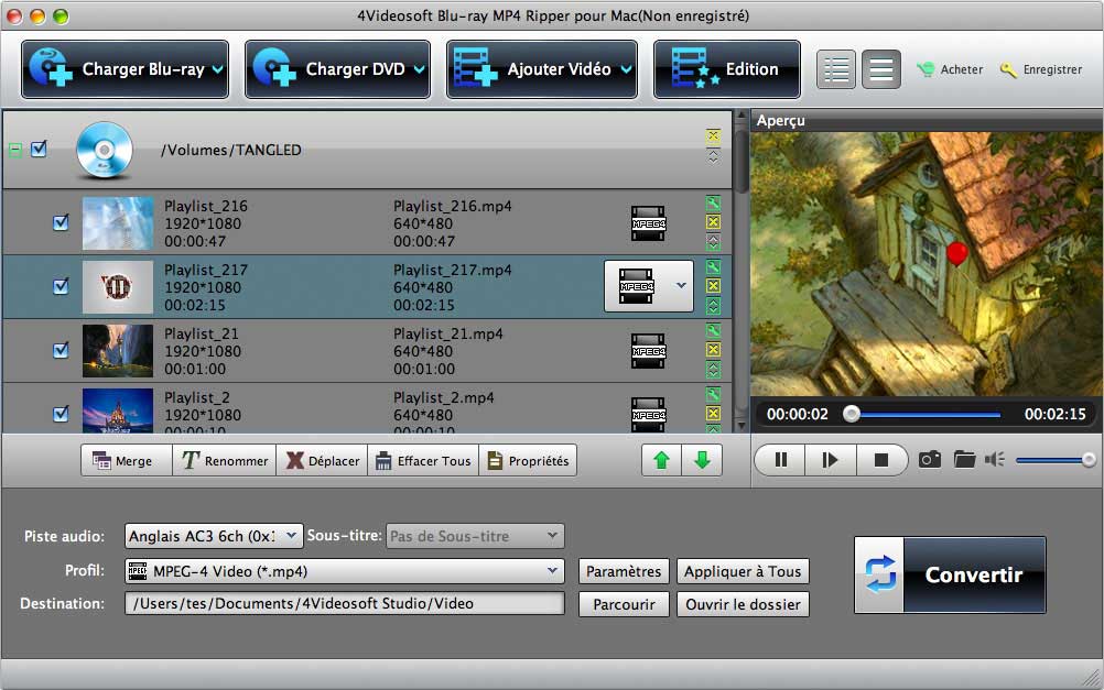 - Ce Blu-ray MP4 Ripper pour Mac est facile à utiliser. Juste Auelques clics peuventt terminer l'opération avec une vitesse élevée et une haute qualité de sortie.