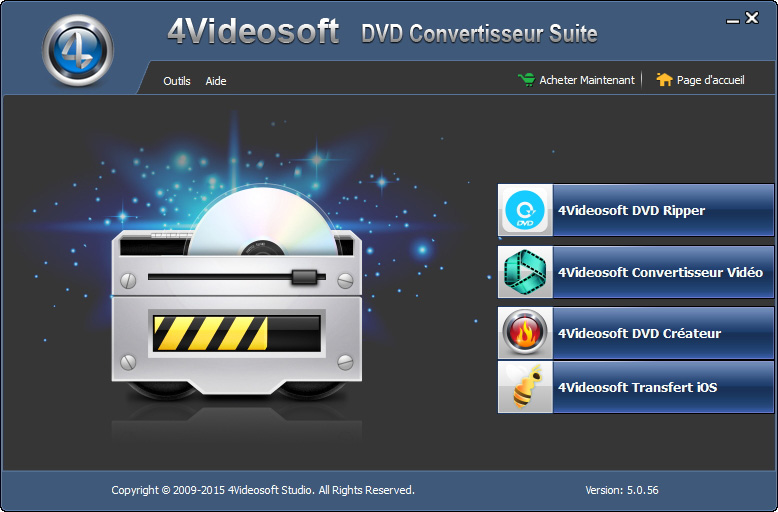 Emballé avec DVD Ripper, Convertisseur Vidéo, DVD Créateur et Transfert iOS, DVD Convertisseur Suite peut non seulement convertir des fichiers DVD et vidéos, mais aussi transférer des fichiers entre iPhone/iPad/iPod et l'ordinateur, et graver les fichiers vidéo en disque/dossier/ISO fichier DVD librement et rapidement.