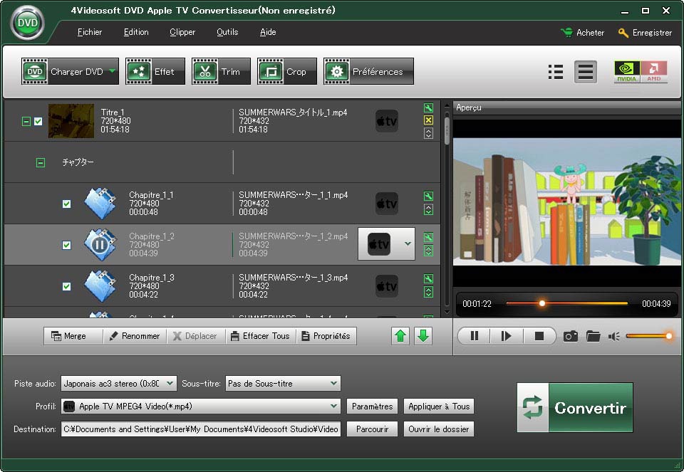 * Convertir DVD en Apple TV formats vidéo et audio.