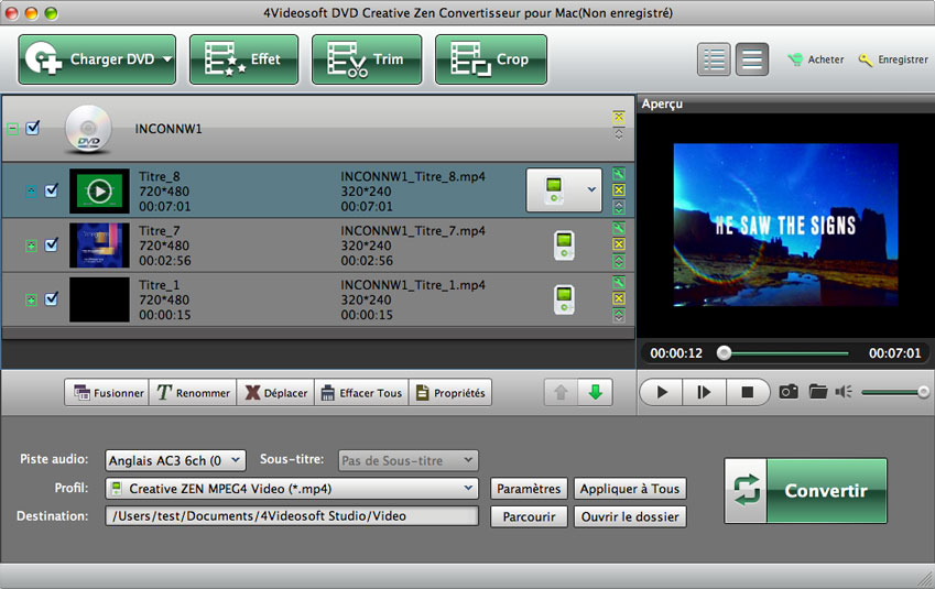- Convertir DVD à Creative Zen sur Mac