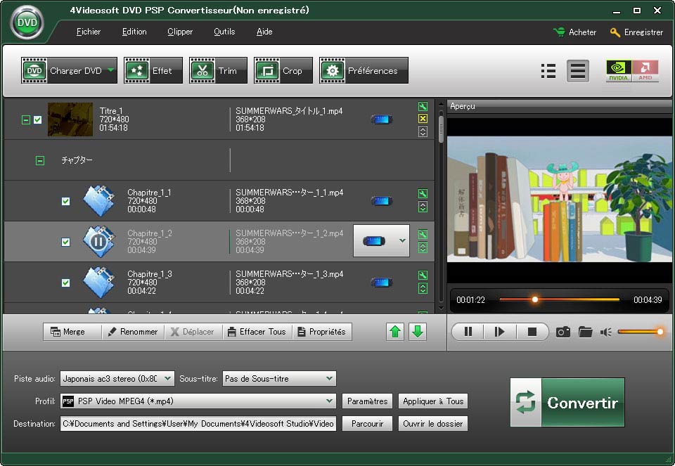 - DVD PSP Convertisseur possède des fonctions d’édition et de ripper fortes.