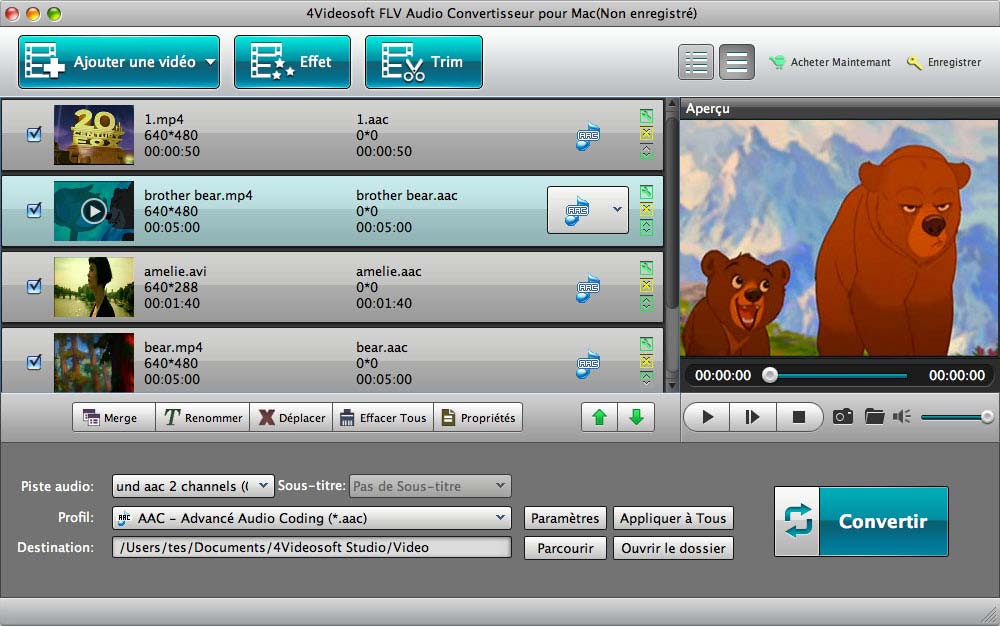 - Ce Mac FLV Audio Convertisseur supporte la conversion de lots, ainsi, vous pouvez convertir plusieurs fichiers audio/vidéo en même temps, de manière à gagner du temps.