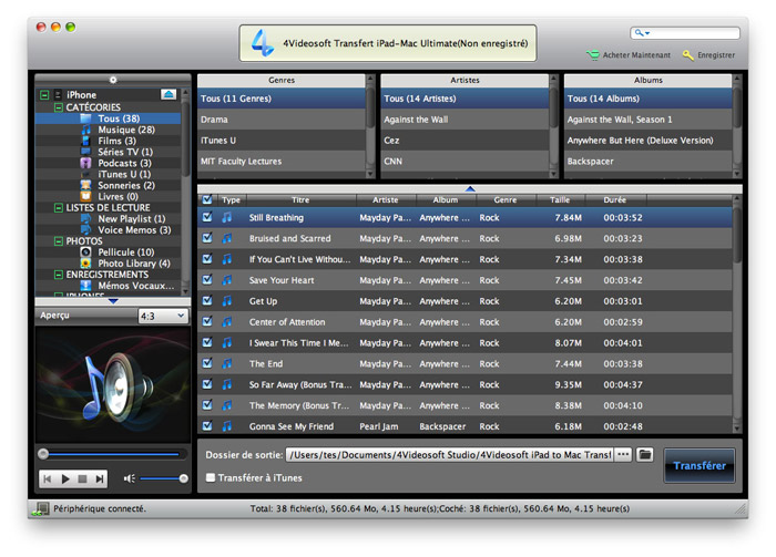 - Ce iPad-Mac Transfert possède un lecteur intégré qui peut vous permettre de les fichiers de film, de chanson et d'images avant de transférer.
