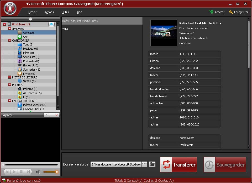 - iPhone Contacts Sauvegarde peut vous aider à transférer tout contact et SMS(MMS) ou ce qui est particulier selon votre besoin.