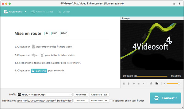 Par augmenter la résolution vidéo, il est capable d'améliorer la qualité vidéo. Si vous téléchargez une vidéo floue de 360p en ligne à partir de YouTube, vous avez de la chance d'améliorer sa qualité avec l'aide de ce Mac Video Enhancement. Il peut convertir votre vidéo de résolution moyenne en résolution plus haute, transformer une vidéo SD en vidéo HD superbe, même la vidéo 4K est hautement supportée. Vous pouvez profiter donc facilement d'un écran super clair sur votre Mac.