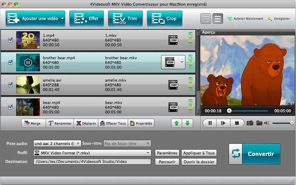 - 4Vidéosoft Convertisseur MKV Vidéo pour Mac peut vous aider à joindre ensemble plusieurs chapitres vidéo pour vous de les apprécier successivement.