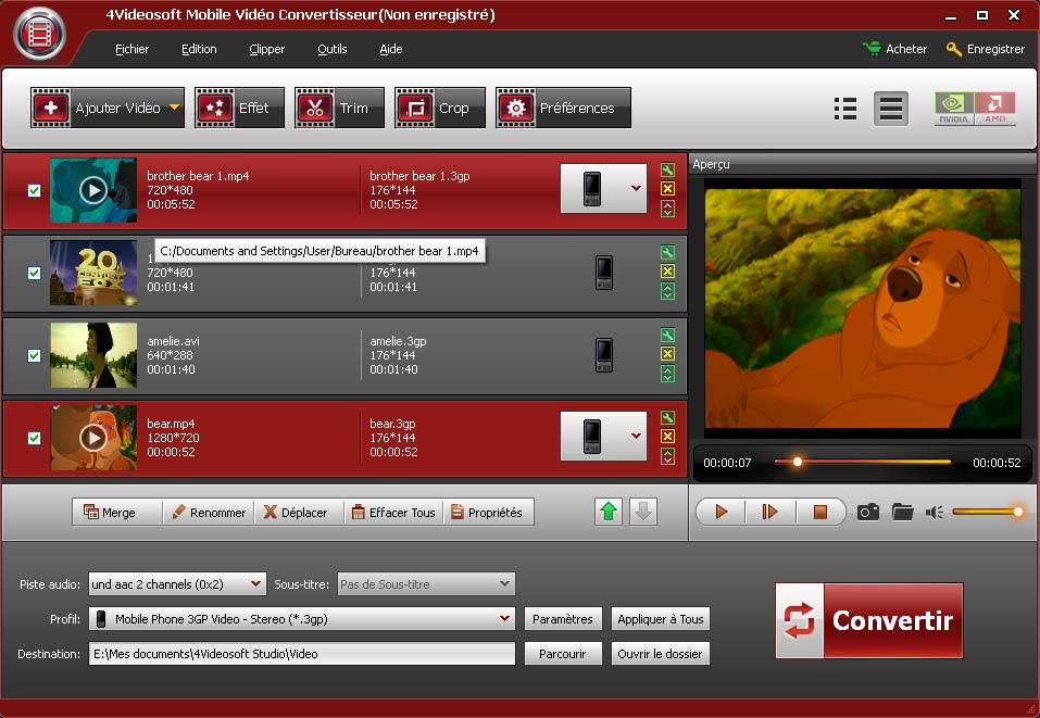 - Mobile Vidéo Convertisseur possède les fonctions d'édition et de conversion fortes.