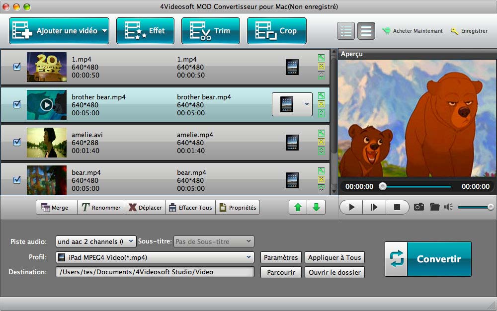 Convertir les fichiers MOD en autre vidéo sur Mac