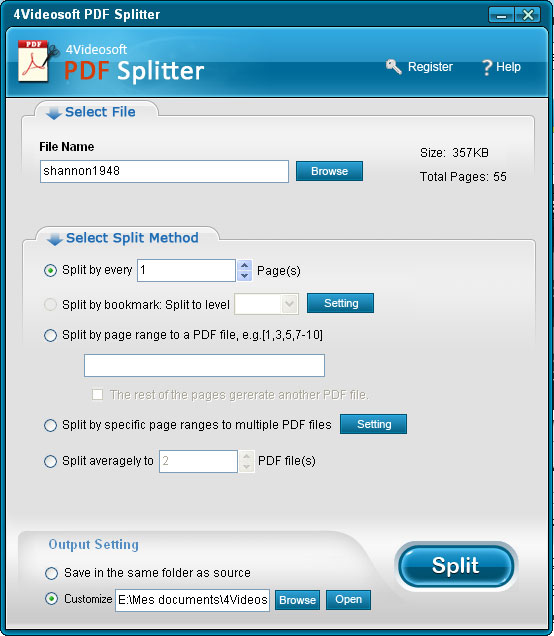 - PDF Splitter vous offrir deux méthodes pour enregistrer les fichiers PDF convertis: enregister dans le même dossier que le fichier source, et enregistrer dans un répertoire personnalisé.