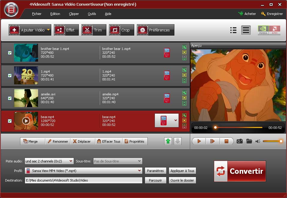 - Convertir tous les types des formats vidéo et audio pour Sansa