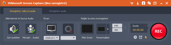 Sélectionner la zone à enregistrer et régler les parametres vidéo/audio.