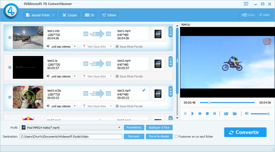 - L'adoption des technologies NVIDIA® CUDA™ et AMD rend ce TS Convertisseur capable de convertir les vidéos à une vitesse extrêmement haute.