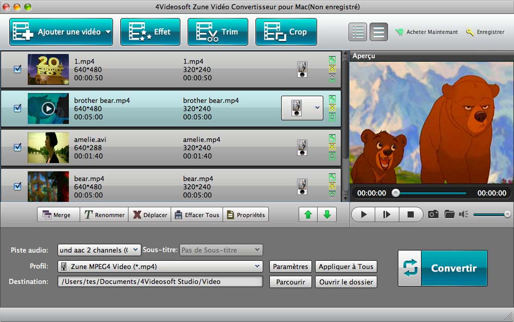 - Convertir les fichiers vidéo en Zune MP4, WMV, AAC, MP3, etc. sur Mac