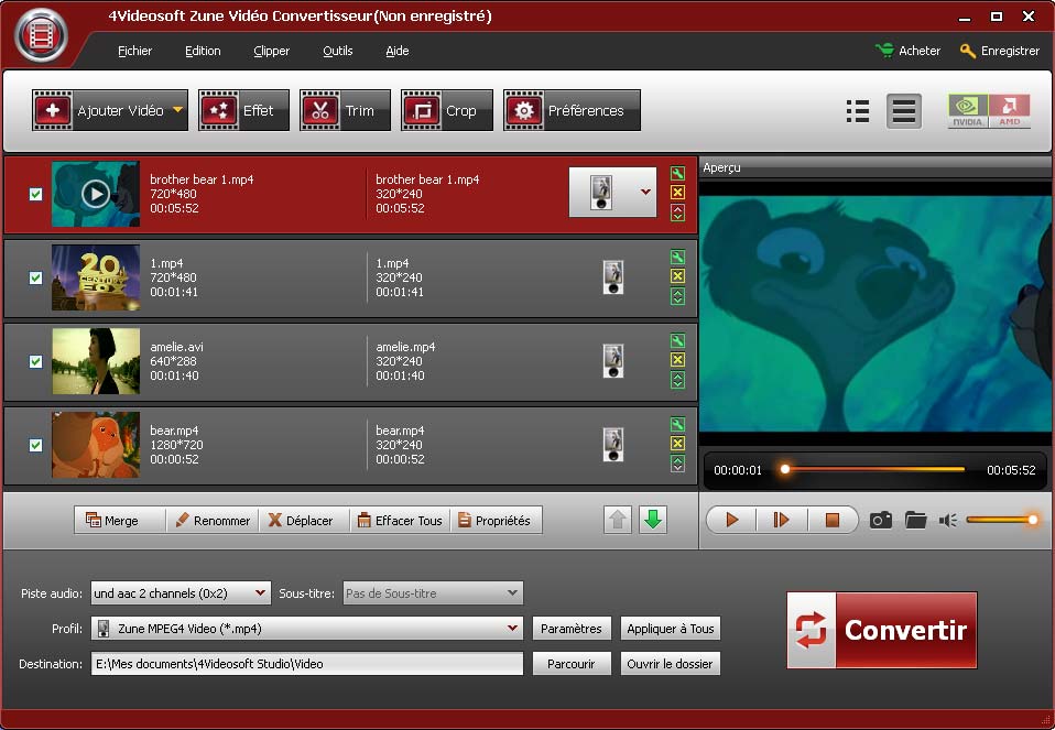 - Zune Vidéo Convertisseur possède les fonctions d'édition et de conversion fortes.